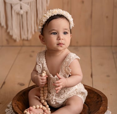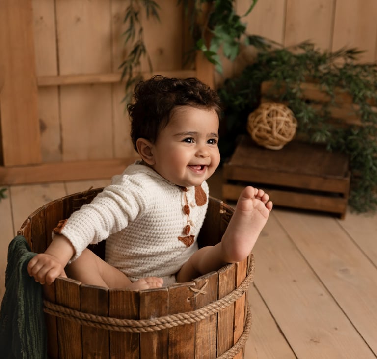 for the best results we recommend sessions take place after the age of 3 months. Most sessions take place at the studio and garden where we create unique setups that suit your child's age. We never push a child beyond their comfort zone and always aim to capture natural images where children are feeling good about the experience and having fun.